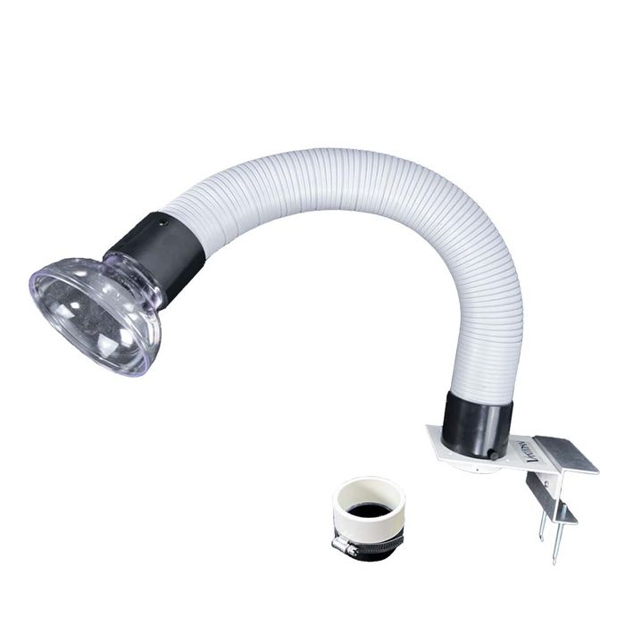 The Flex Hose Plus is a versatile, movable dust collection accessory for either on the side or through the top of your work area, or even mounted on a nearby wall. It features an extra-rigid flexible hose which can be tightened or loosened by twisting with your hands. The wide-mouth suction area is great for collecting all kinds of debris, dust, and even fumes.