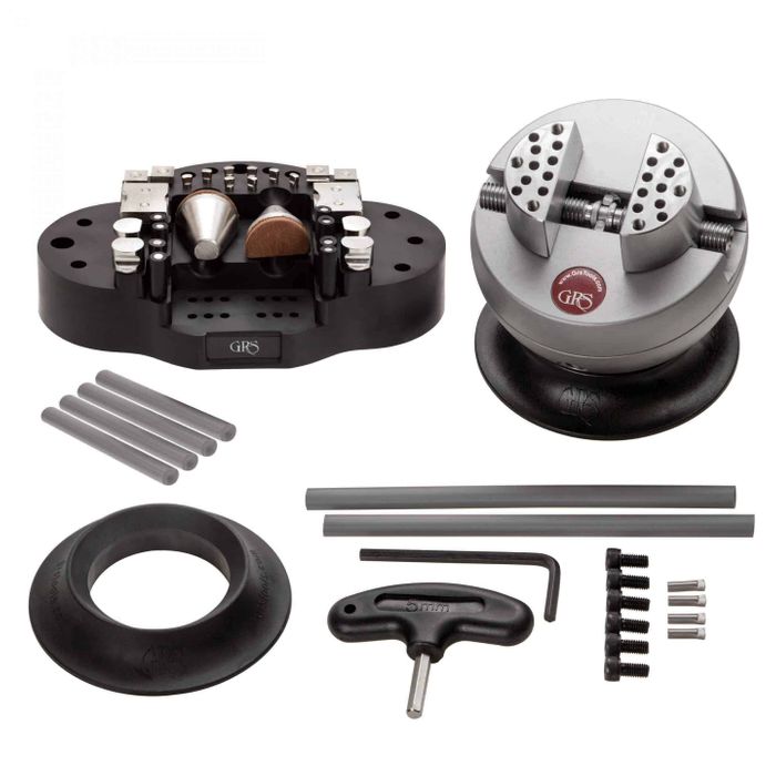 The MicroBlock XL is a 7 lb (3.2kG) vise with a 100 mm ball diameter. It is the perfect size between the GRS MicroBlock and GRS Standard Block. The low profile is designed for microscope work Compatible with all MicroBlock accessories Larger than the original MicroBlock but still easy to move for better adaptability while working