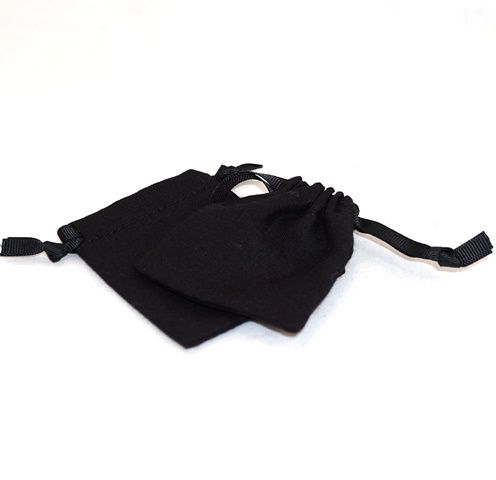 - SMALL CALICO POUCH BLACK/BLACK RIBBON 70X80MM