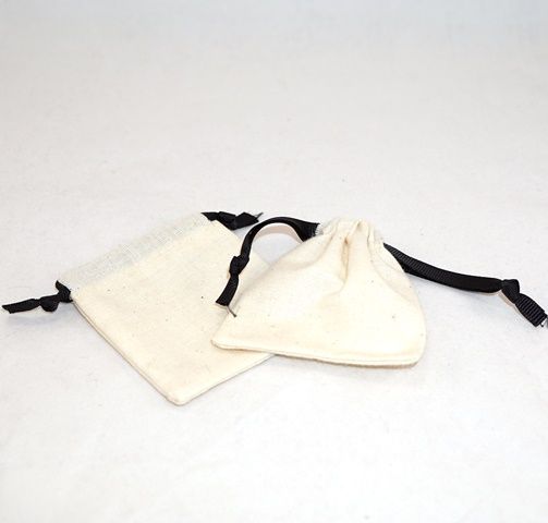 - SMALL CALICO POUCH CREAM/BLACK RIBBON 70X80MM