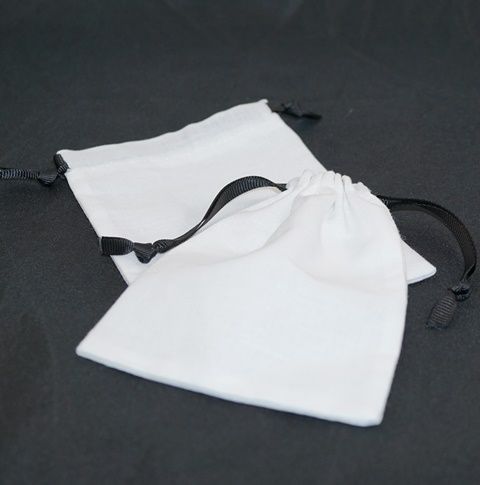 - LARGE CALICO POUCH WHITE/BLACK RIBBON 95X130MM
