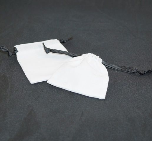 - SMALL CALICO POUCH WHITE/BLACK RIBBON 70X80MM