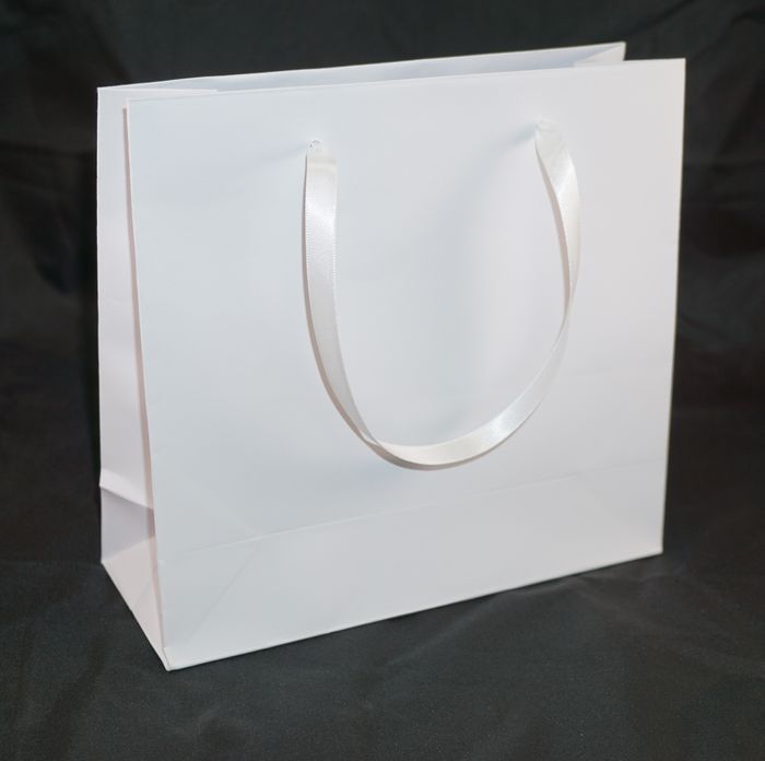 - DELUXE WHITE MEDIUM CARRY BAG WHITE RIBBON HANDLES