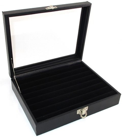 - DELUXE GLASS TOP RING DISPLAY CASE W/ROLLS BLK SML