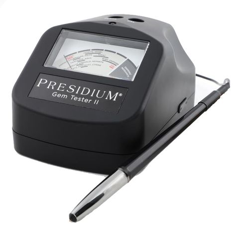 The Presidium PGT II / CSE is the only colored gemstone thermal testerin the industry. Features , Retractable thermoelectric probe tip that ensures constant pressure between probeand gemstone, Industry,s thinnest probe tip (0.6mm) for testing gemstones as small as 0.02ct, Metal alert buzzer to ensure that probe tip is in contact with gemstone during testing, Clear and easy-to-read analogue dial, Can differentiate between 15 types of gemstones, Built-in glass and Calibration (CAL) test discs for reference Benefits , Identifies diamonds/moissanites and most coloured gemstones, Tests both polished and unpolished gemstones, Tests gemstones as small as 0.02ct, Consistent and reliable results every time, No waiting time between tests, Simple and easy to use, Runs on 2 AA batteries or adaptor (included) *We are the exclusive authorised agents for distribution of Presidium products in New Zealand, please be wary of parallel imports as your purchase may not carry a warranty or be the genuine article*