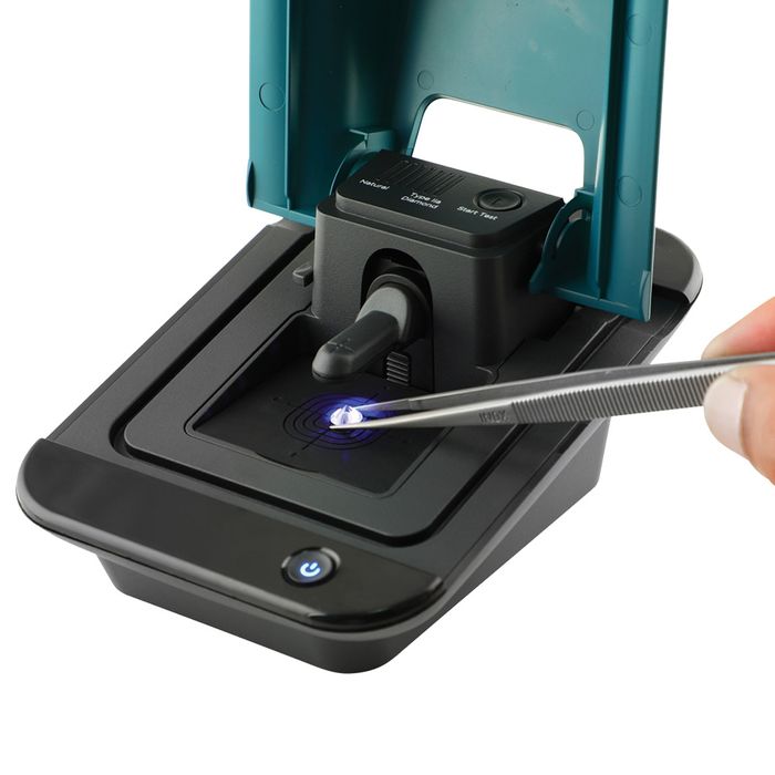 SDS II by Presidium has achieved 100% Laboratory Grown Diamond Referral Rate when ASSURE TESTED. The Synthetic Diamond Screener II is developed by Presidium to help screen out Type IIa colorless diamond, which is likely to be synthetic and created through chemical vapor deposition (CVD) or high pressure high temperature (HPHT) syntheses, from the natural Type Ia colorless diamond. The SDS II uses advanced technology that measures a diamond’ s UV light transmittance ability. It is a portable desktop diamond verification instrument suitable for both loose and mounted stones, including melees as small as 0.02ct. Easy to use and battery-operated, its indicator light bars give a blue light to indicate that the stone is a natural diamond and a red light to indicate a Type IIa diamond. The device gives clear and accurate results within two seconds.