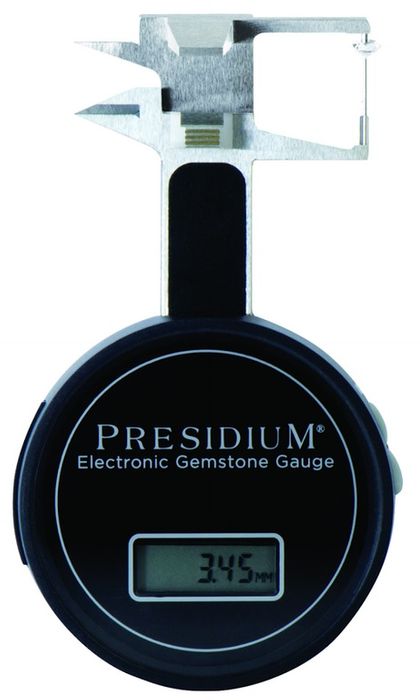 Presidium Electronic Gemstone Gauge is the industry’ s first digital gemstone gauge and remains the only reliable one able to convert gemstone dimensions to estimated carat weight for round brilliant-cuts.