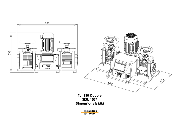 Durston have created the same high quality power Rolling Mill but at a lower price. Introducing the TUI. Available in TUI single and the TUI Double. The actual rolls, castings, gears etc are exactly the same mills and parts that we use on the existing DRM 130 power mills. The 3 differences are only cosmetic and are as follows. Steel main plate instead of cast-iron. Sheet metal guard instead of cast-iron. One Central emergency stop