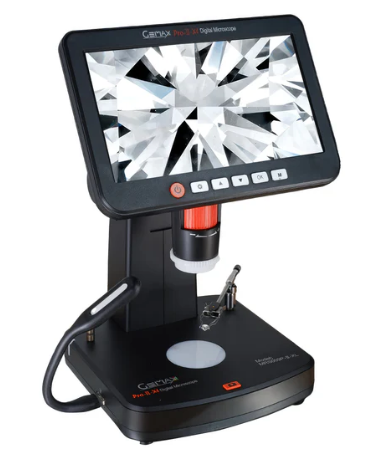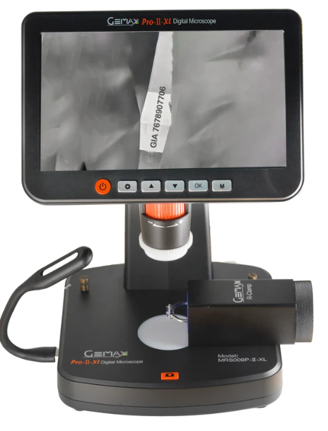 The Gemax Pro II XL is a versatile, high-performance microscope featuring a 7-inch high-resolution display, broad magnification range (10x to 300x, up to 1200x digitally), and laser inscription viewing, making it ideal for precise inspections.
