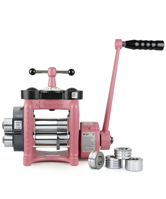 Introducing the new Patent Pending Agile Elite C110 Rolling Mill, the latest premium addition to our renowned Agile series. The King’ s Award Celebration Edition, this exciting new rolling mill stands out with its robust and smooth powder-coated PINK finish, additional features, and a suite of side extensions, bringing enhanced capabilities to simplify your metalworking projects.