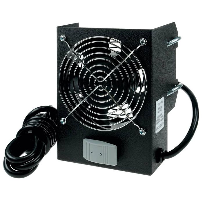 The computer-grade quiet fan is enclosed in a secure steel housing that clamps onto the carrying handle and installs in seconds.